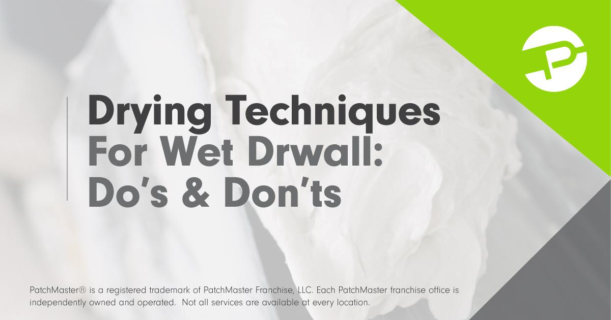 - Act Quickly. Time is of the essence when it comes to drying wet drywall. The sooner you start drying, the better your chances of preventing further damage and mold growth. Contacting a professional drywall restoration company like PatchMaster immediately after water damage is essential for swift action.